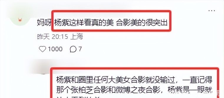 “杨紫的肩颈线条我愿称之为人间理想,戴珠宝根本不需要额外加戏”“勒克莱尔和周翊然站一起像两个物种,中间杨紫美得刚刚好”“APM这次全紫布置太懂排面了,连空气都在为她打光”。