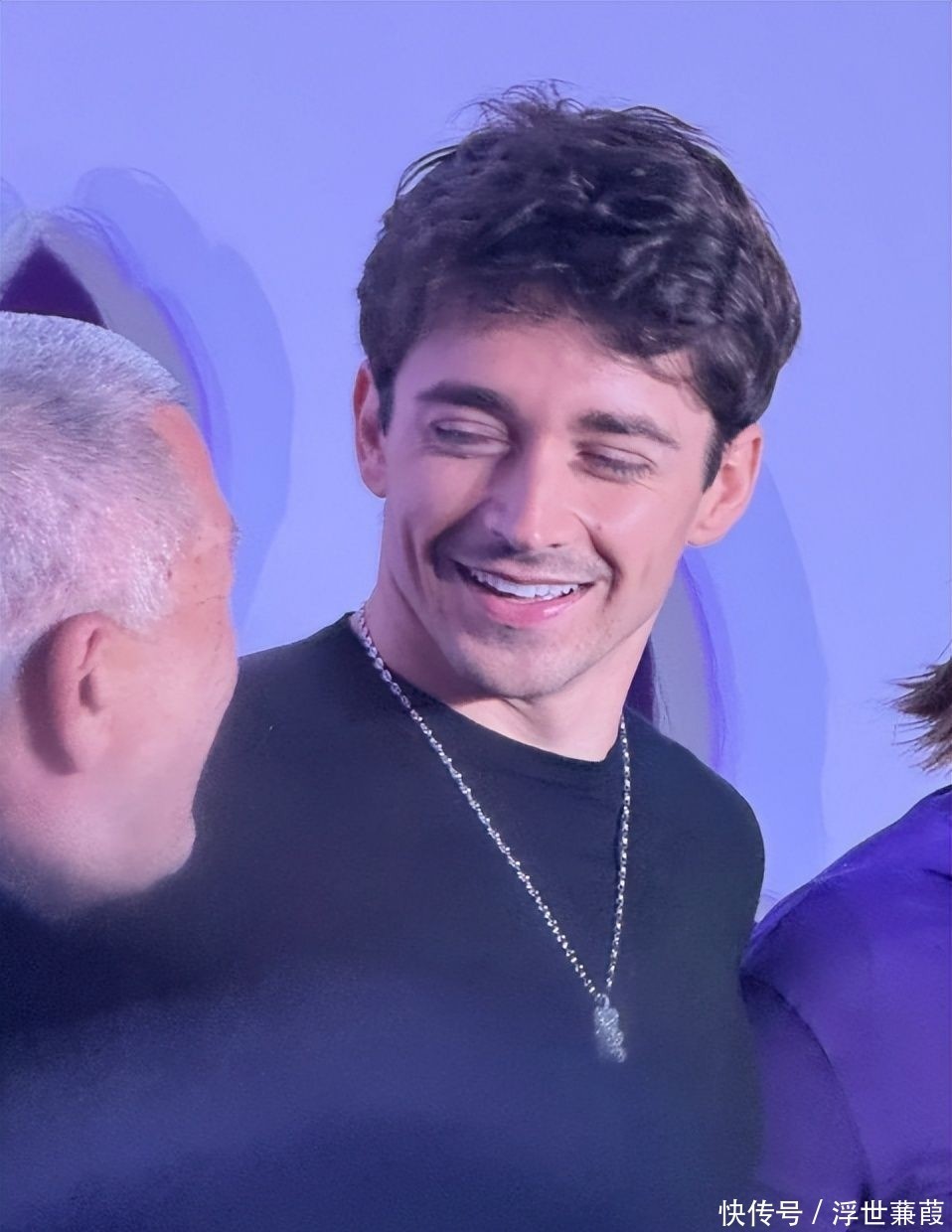 勒克莱尔作为职业赛车手,肩背厚实、颈部肌肉遒劲有力,粗壮脖颈几乎与头围相近,仅凭站姿便释放出强大存在感。