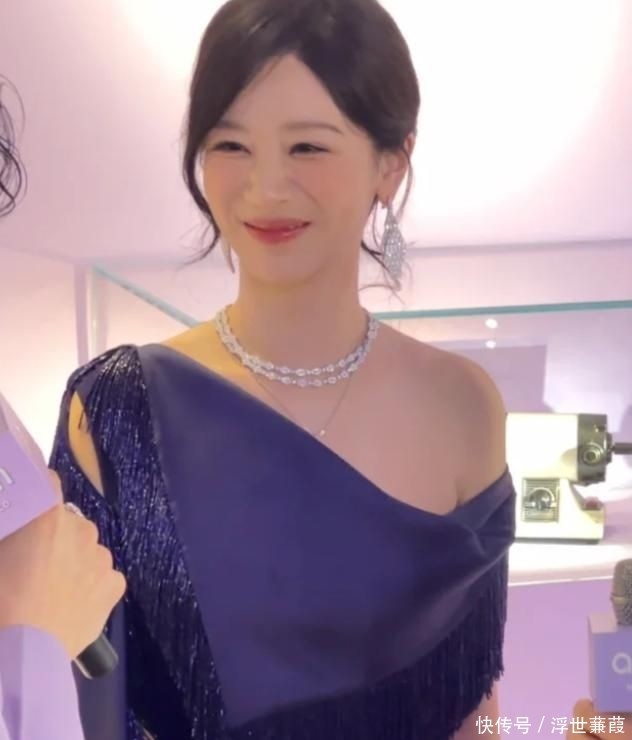 整场活动中,她始终笑意盈盈,主动向观众席挥手致意,亲切自然毫无距离感;偶有侧脸角度浮现明显法令纹,略带妆效凝滞感,却反而添了几分真实温度。